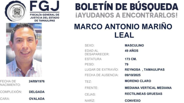 Reynosa, Tamaulipas. – Las autoridades del estado fronterizo confirmaron la desaparición de Marco Antonio Marino Leal, vicepresidente de la Federación...